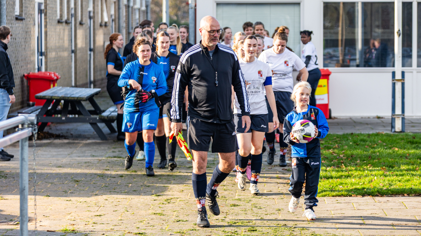 Pupil van de Week Norah van der Zee trapte de middag af met een mooie treffer, waarna de vrouwen het stokje overnamen. Al in de tweede minuut zette Demi de Looze de 1-0 op het scorebord. Harlingen bleef doordrukken en rond het half uur was het Meike Homminga die de voorsprong uitbreidde naar 2-0. En niet veel later schoot ze opnieuw raak, dit keer na een fraaie assist van Deveny van der Kooi: 3-0. Maar Dronrijp/Foarút gaf niet op. De gasten bleven druk zetten en profiteerden van slordigheden bij Harlingen, waardoor beide ploegen uiteindelijk met een 3-2 stand gingen rusten.