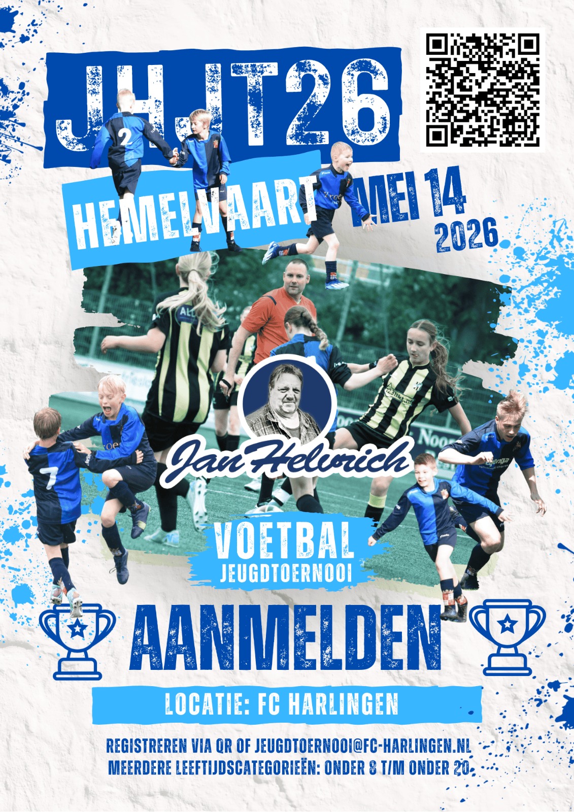 Meer informatie en inschrijven kan via jeugdtoernooi@fc-harlingen.nl of via Tournify. Zoek op Jan Helvrich Jeugdvoetbaltoernooi 2026.