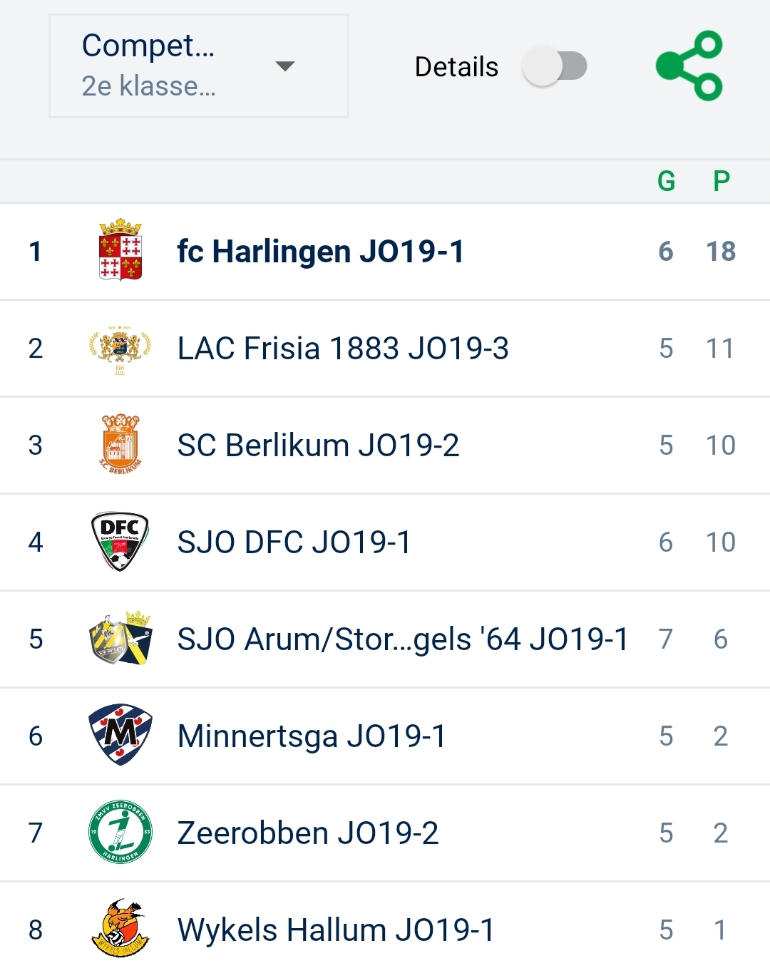 Na een bloedstollende wedstrijd tegen SJO Arum/Stormvogels kroonde fc Harlingen JO19-1 zich dinsdagavond tot kampioen van de 1e fase. Na een 0-1 achterstand bij rust en zelfs een 0-2 tussenstand, knokte fc Harlingen zich knap terug. Het bleef tot de laatste minuut spannend maar in het laatste kwartier viel dan eindelijk de verlossende 4-3! Met dit kampioenschap kan JO19-1 zich gaan opmaken voor de knock-out fase van de beker.