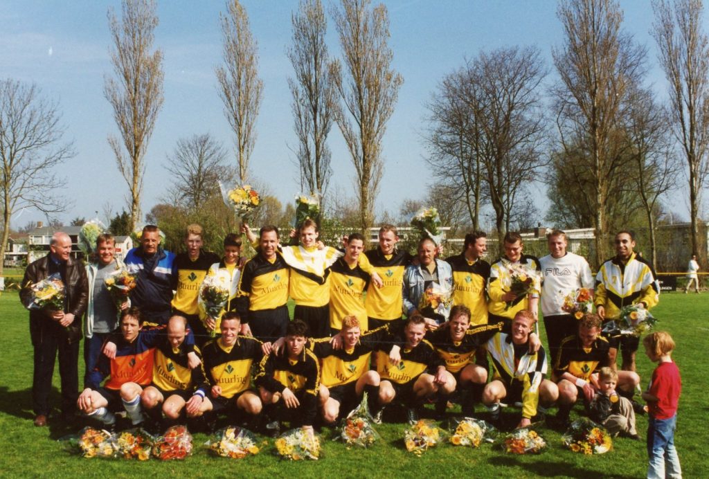 Boven: Guus Janssen, Bennie Zeilmaker, Johan Dijksman, Niels Outhuijse, Erwin Kooistra, Albert van der Ven, Wouter Zijlstra, Willem Wielinga, Chris Douwsma, Bennie van Dijk, Jelle Talhout, Jitze Mulder, Hans Douwsma, Daniel Rahakbauw. Onder: Jelle Helvrich, Rene Metz, Bram Wijbenga, Hilko Mulder, Joost Outhuijse, Ronald Jilderts, Emiel Postmus, Robert Veltman, Anne Alberda.