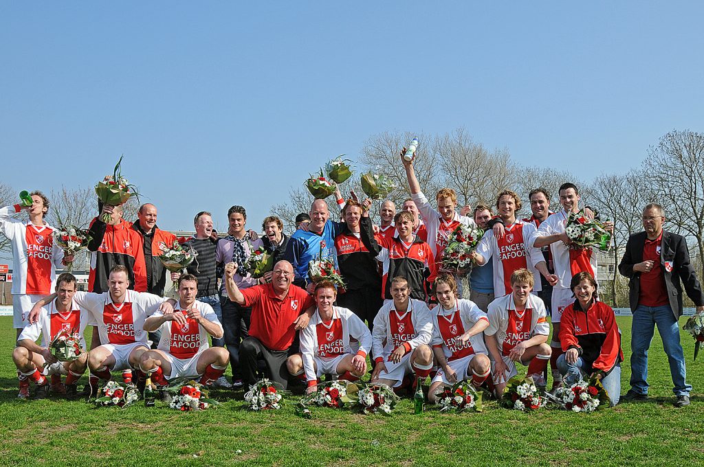 Op de foto het elftal en ‘toebehoren’: Boven, v.l.n.r. Ralf van Hurck, Gerrit v.d. Bij, Hessel Zuiderhof, Mathijs Boonstra, Anne Alberda, Bart Jan Metselaar, Tom Bosma, Stefan Anema, Sjouke Bootsma, Freek Töpfer en Syb Vogel. Onder: Albert Nieuwenburg, Bauke Zuiderhof, Matthieu Visser, Jaap v.d. Veer, Niels Vlottes, Tim Jaarsma, Barry Hamstra en Marga Potma.